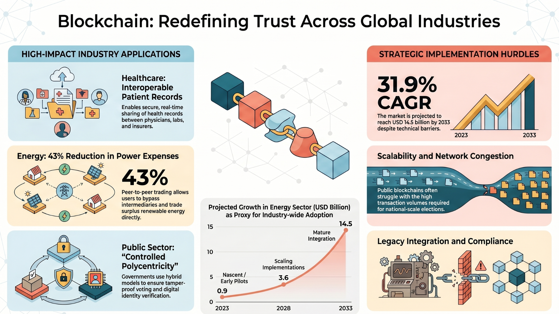 Blockchain applications span multiple industries, each leveraging decentralization, transparency, and security in different ways. Here are the key types: