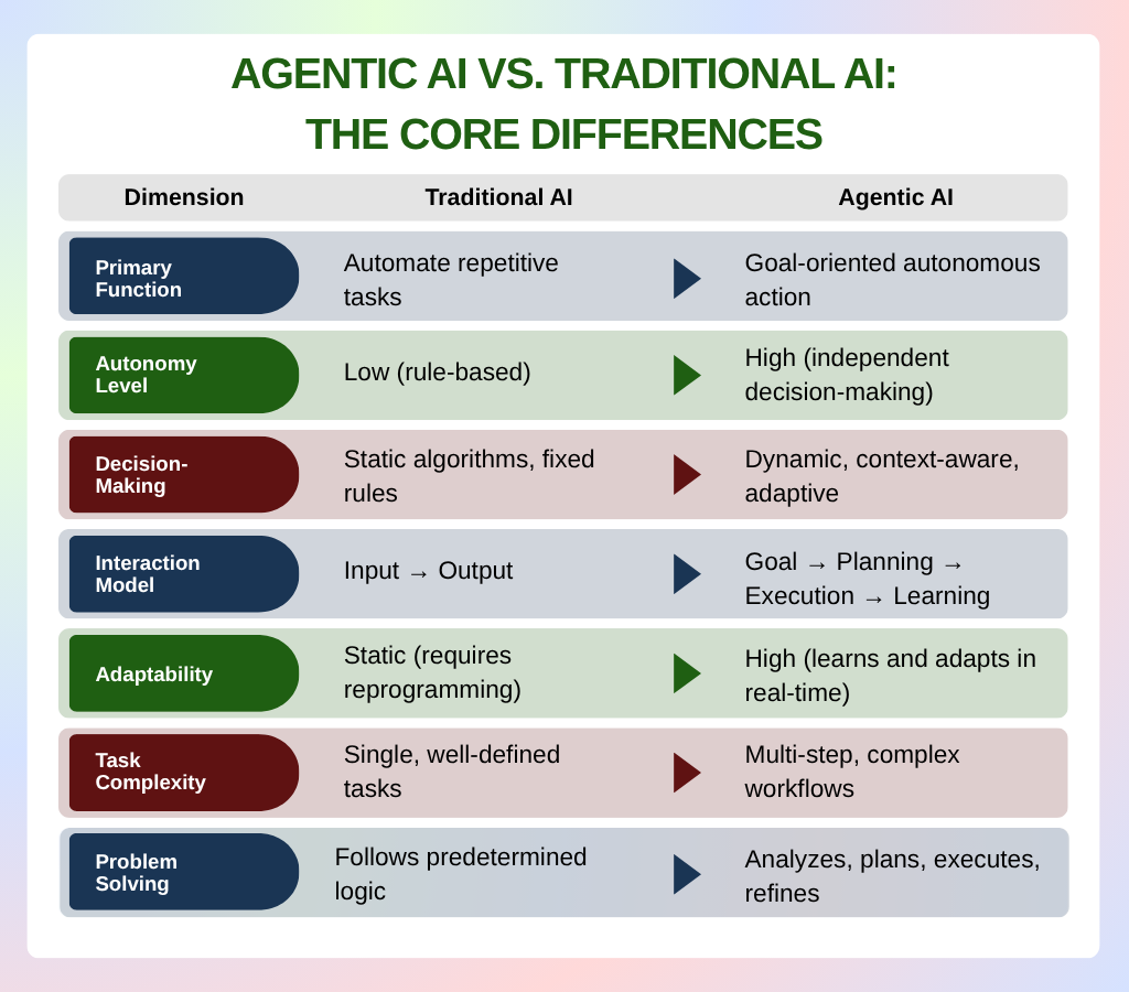 Traditional AI is more task-focused, while Agentic AI is more goal-oriented. Businesses that succeed won't merely use AI, but they will implement AI that is capable of independent thinking, planning, and acting, and still being consistent with human values.